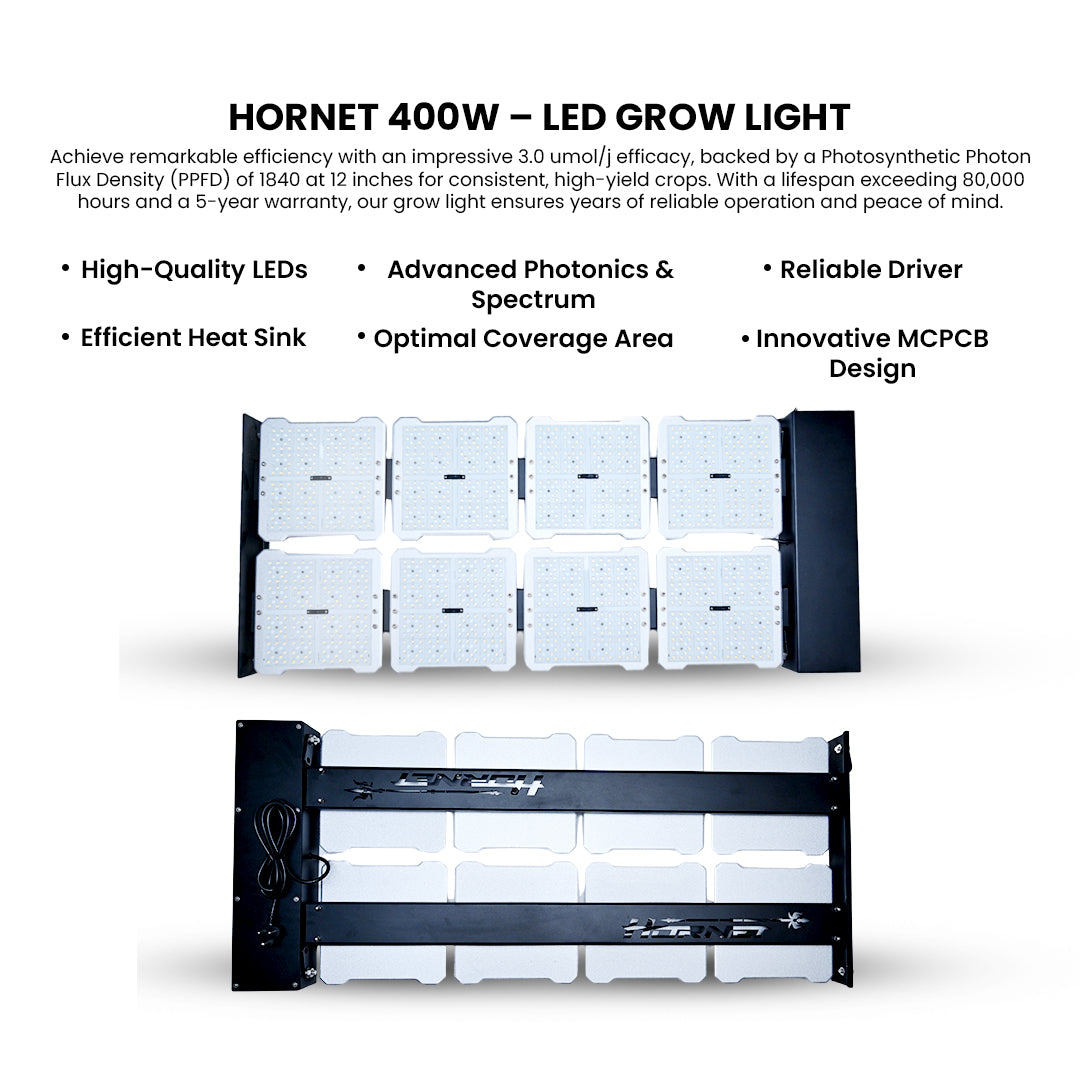 Transform your indoor garden with the Hornet 400W—power, performance, and precision in every beam!